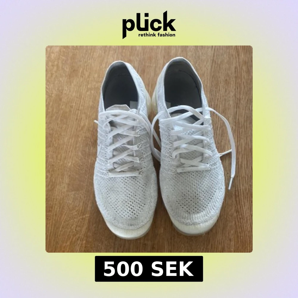 Säljer ett par stilrena Nike Air Vapormax Flyknit i vitt. Skorna har en modern design med stickat material och en transparent sula. Perfekta för både träning och vardag med sin lätta och bekväma passform. Dom är lite smutsiga