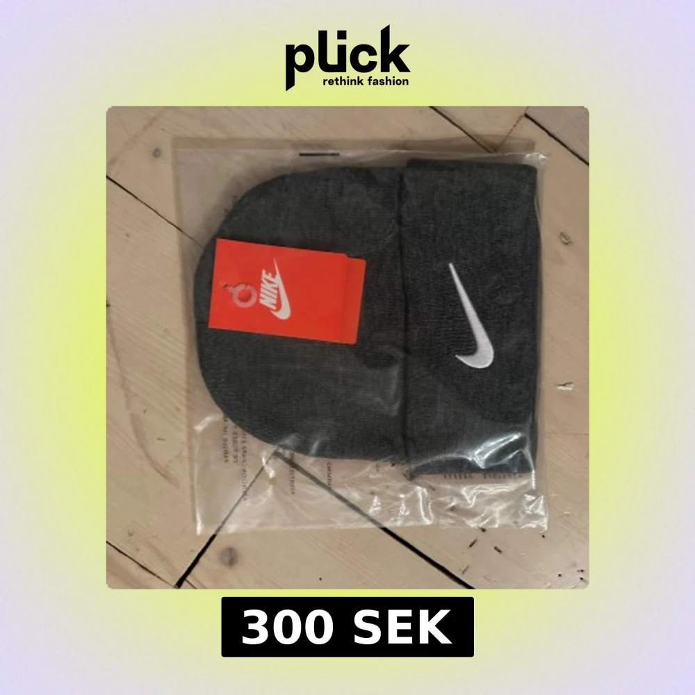 Snygg mörkgrå mössa från Nike med klassisk vit swoosh broderad framtill. Perfekt för kalla dagar och streetwear-stil. Mjuk och stretchig, passar de flesta huvuden. Kommer med originaltagg kvar.