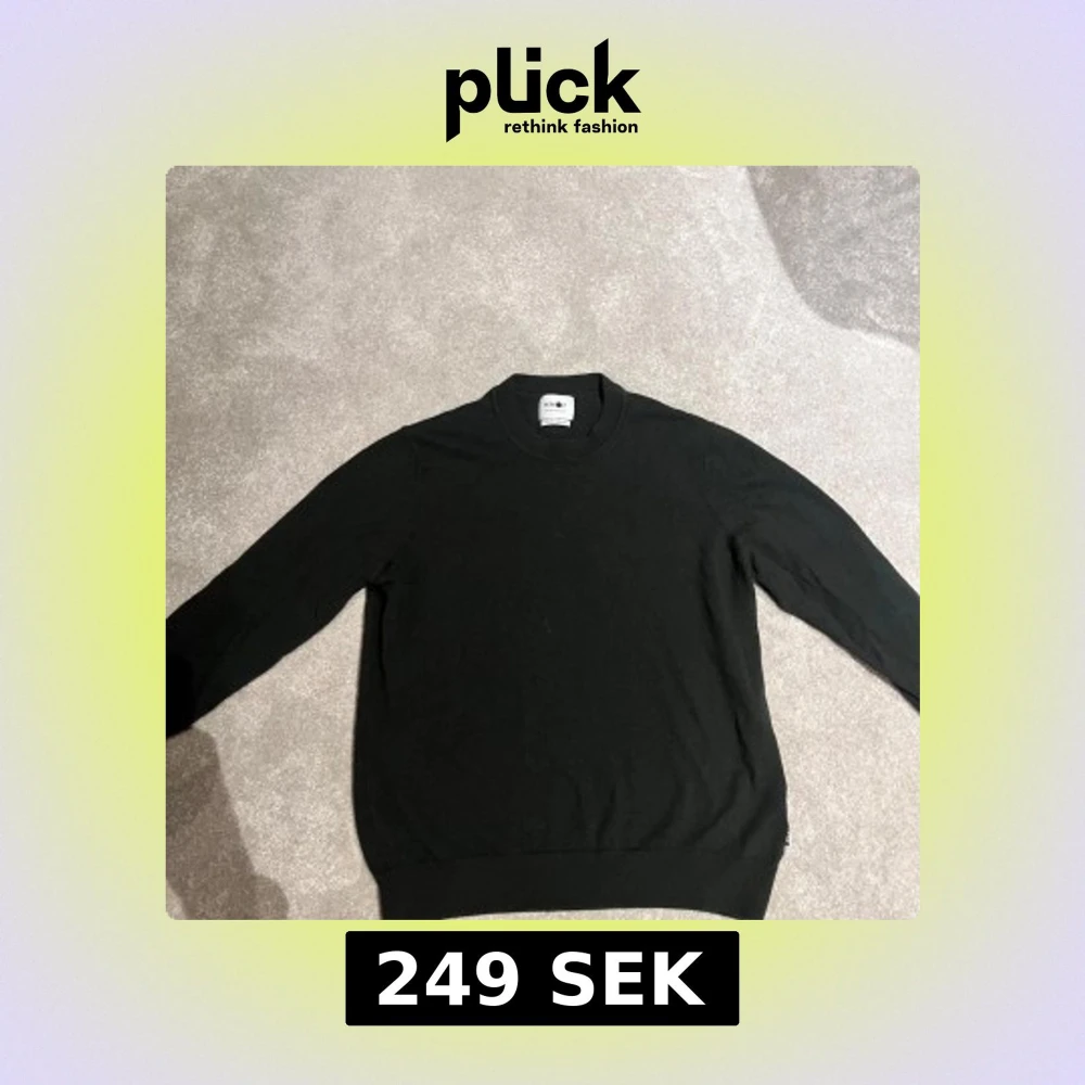 Säljer en klassisk svart stickad tröja från NN07, tillverkad av italienskt garn. Tröjan har rund halsringning och långa ärmar, perfekt för en stilren och enkel look.