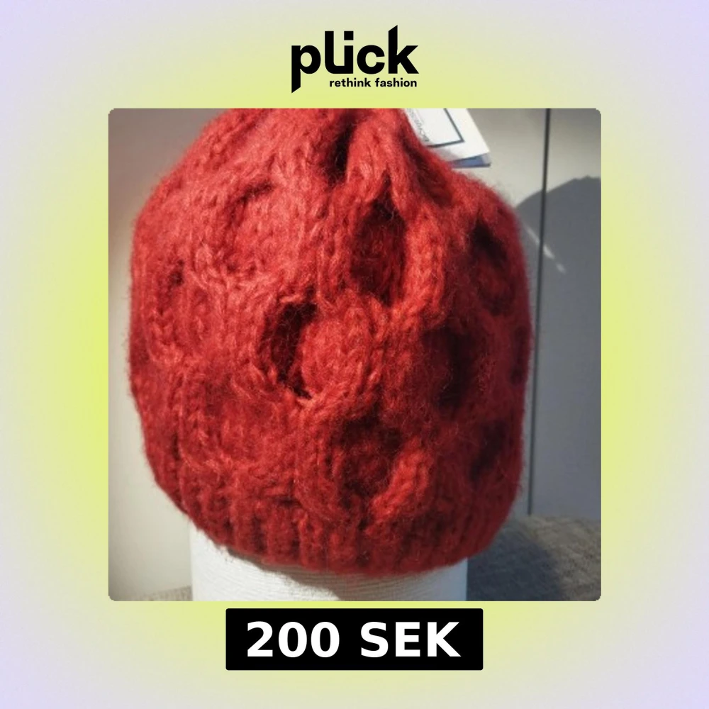 Unik röd mössa, handstickad i ull. Perfekt för kalla vinterdagar med sitt varma och mjuka material. Designad av skandinaviska designers för att klara det nordiska klimatet.
