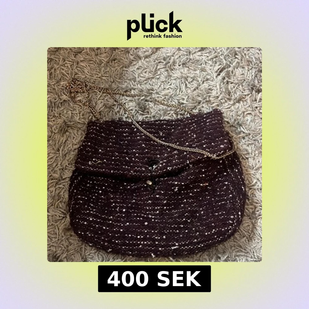 Snygg axelväska i mörklila från Beck Söndergaard med guldigt kedjeband. Väskan är stickad med vita prickar och har ett blått innerfoder. Perfekt för dig som vill ha en unik och trendig accessoar med cool textur och detaljer./ vill tillägga att stängningen på väskan är trasig så jag har för tillfället en gummisnodd som funkar lika bra.!