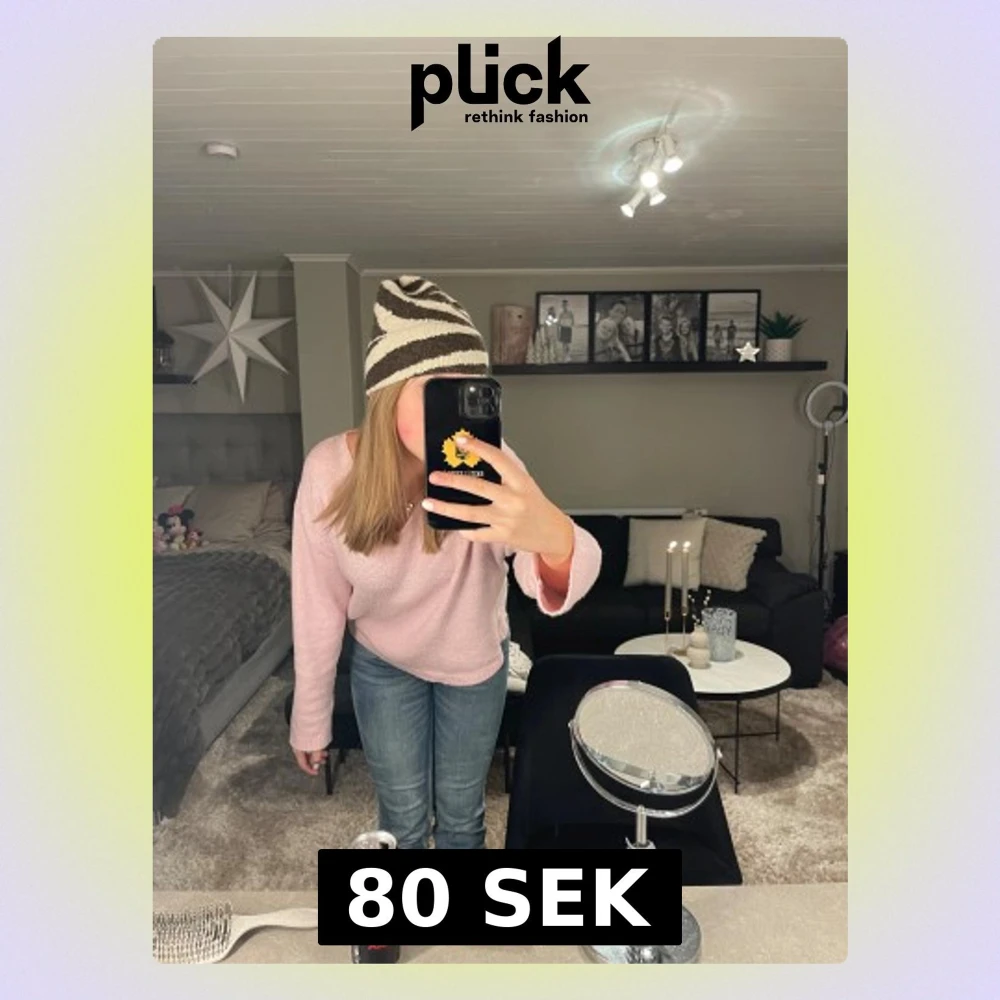 Säljer en riktigt snygg stickad mössa med zebramönster i beige och brun. Mössan har en klassisk form med uppvikt kant och är perfekt för att ge din outfit lite edge. Materialet är mjukt och värmande, passar grymt till höst och vinter.