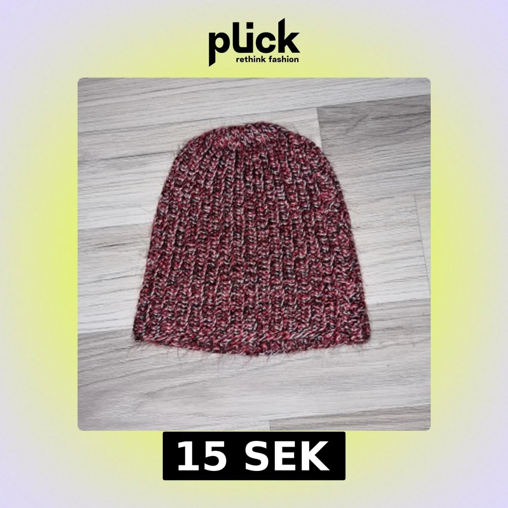 Säljer en snygg röd och svart stickad mössa med ribbad design. Perfekt för att hålla värmen under kyliga dagar. Mössan har en skön passform och är Hemmastickad.
