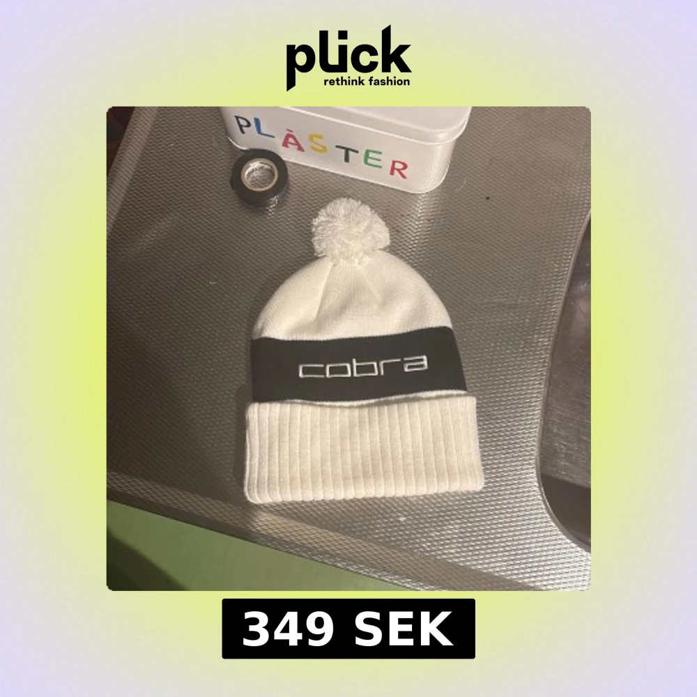 Snygg vit mössa från Cobra med svart band och broderad logga framtill. Mössan har en stor tofs på toppen och bred ribbad uppvikning. Perfekt för kalla dagar och ger en stilren look.