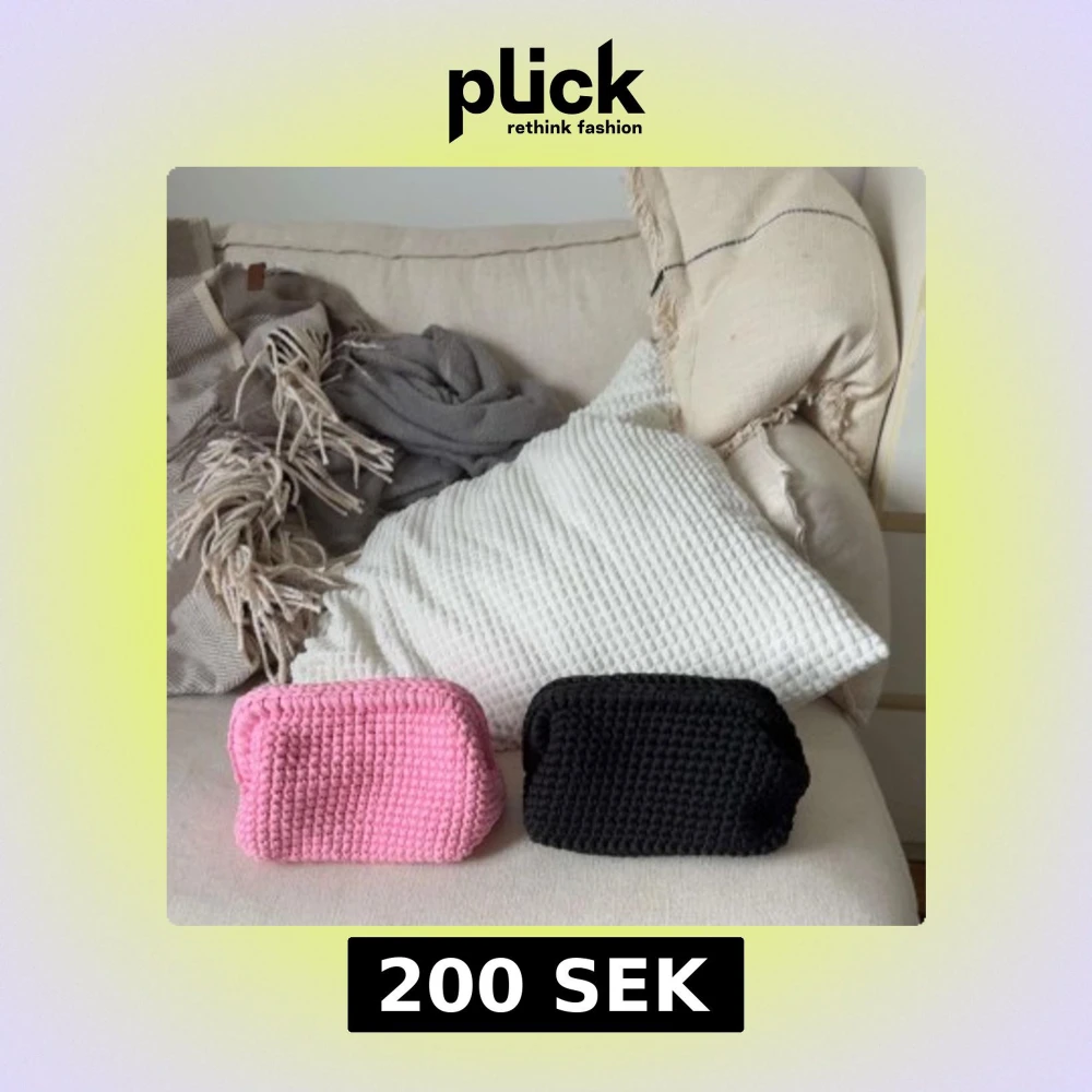 Två handgjorda virkade väskor med clutch, en i ljusrosa och en i svart. Passar perfekt som en handväska eller en necessär🩷 Just nu är den rosa till försäljning, men det finns även möjlighet att beställa andra färger! Vid beställning av andra färger skriv till mig här på Plick alternativt på Instagram till @line.frode🥰
