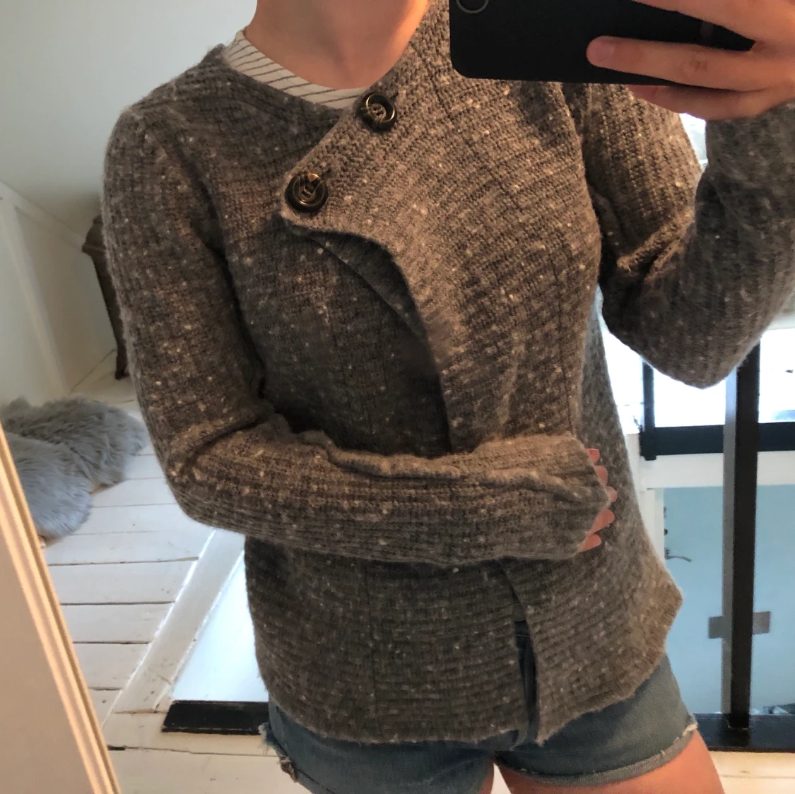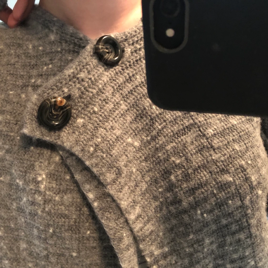 Kofta i storlek XS 🌟 den går lite omlott och knäpps med två knappar i tortoisemönster vid halsen. Fina detaljer på ärmarna! Sparsamt använd, köpt för 600kr 🥰