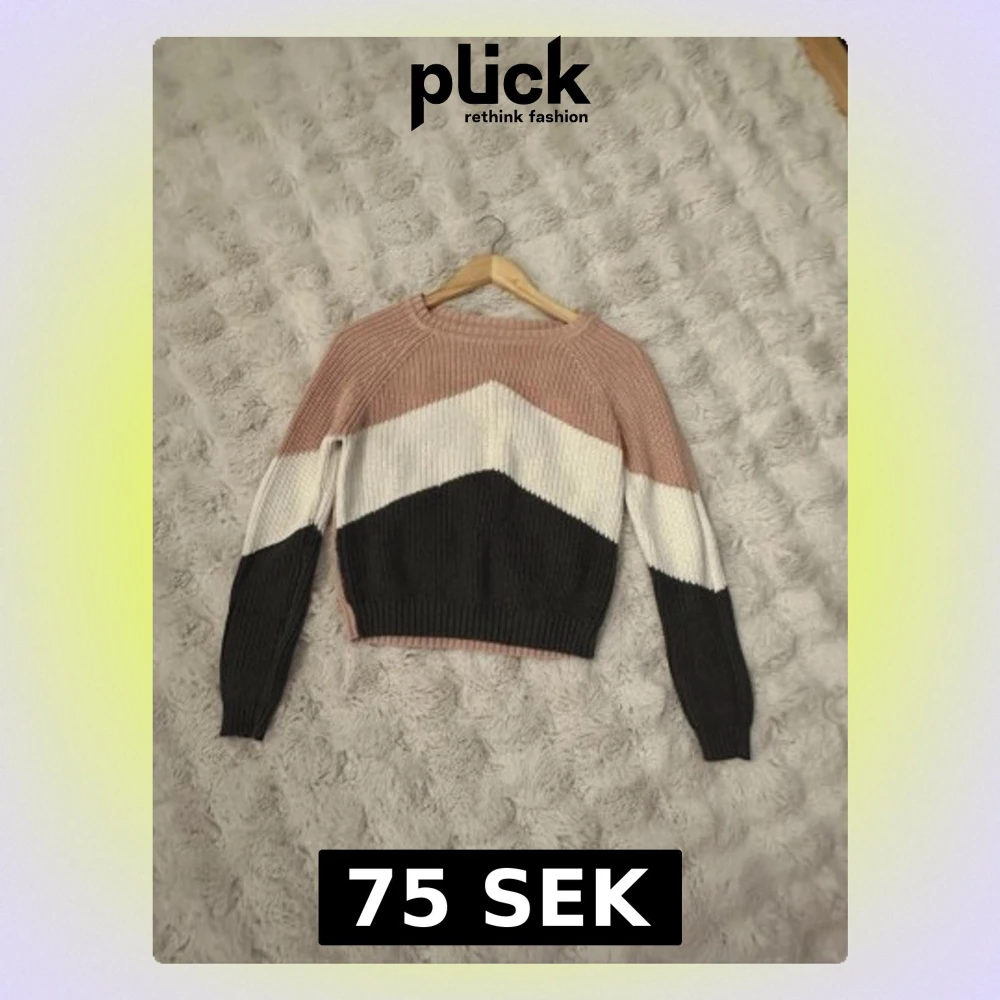 Säljer en snygg stickad tröja från Object i storlek XS. Finstickad tröja i blockfärger. Tröjan har en rosa, vit och grå färg. En liten missfärgning som knappt syns, se bild. En liten lös tråd, se bild, annars är det i väldigt fint skick.