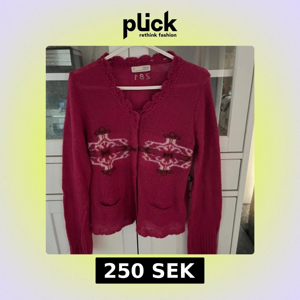 Säljer en stickad rosa kofta från Odd Molly med unikt broderat mönster på fram och baksidan. Lite nopprig men det ska gå att få bort💕