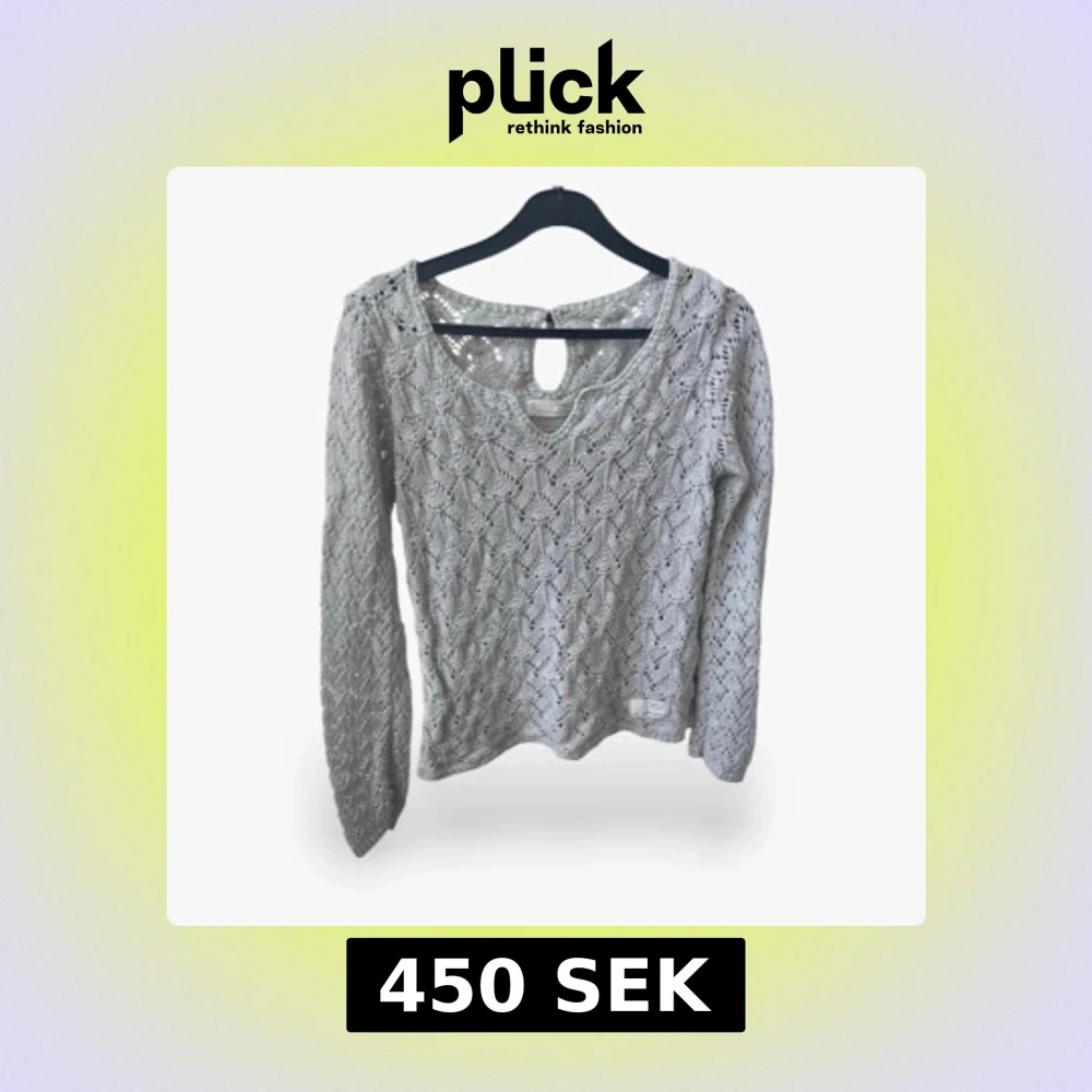 Supersöt ljusgrå stickad tröja från Odd Molly i 100% bomull. Tröjan har ett vackert hålmönster, rund halsringning och lång ärm. Fin detalj med knapp och öppning i nacken. Perfekt för lager-på-lager och en chill men ändå stilsäker look.