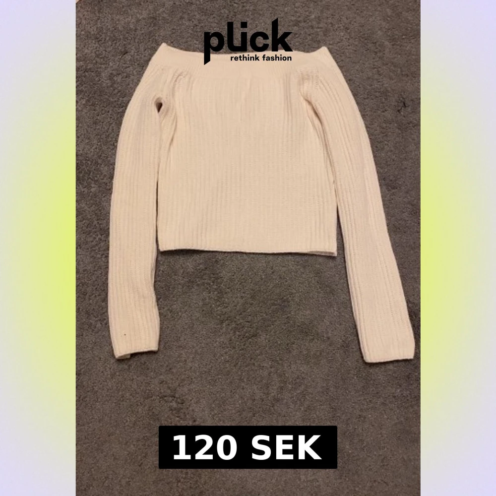 Snygg offshoulder stickad tröja i ljus beige färg. Tröjan har ribbad struktur och långa ärmar, perfekt för dig som gillar en enkel men trendig look. Passar dig som vill ha en croppad stil och gillar mjuka material.