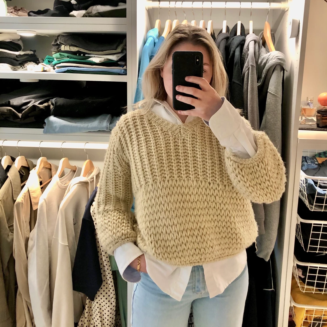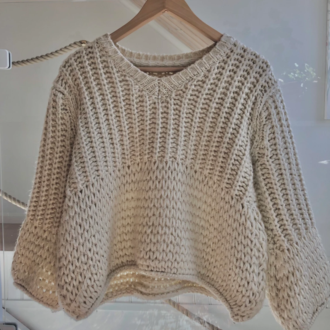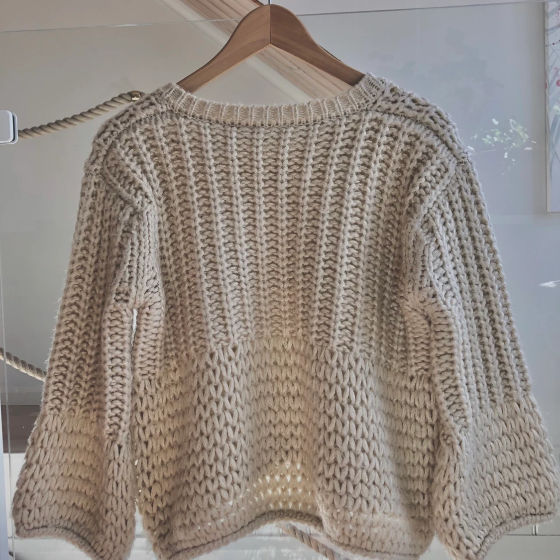 Jättefin stickad tröja! Perfekt att ha en sen sommarkväll 😍 dessvärre är tagen borta så vet dessvärre inte vart den är ifrån. Vet heller inte storleken men jag är en xs och den passar jättebra🥰