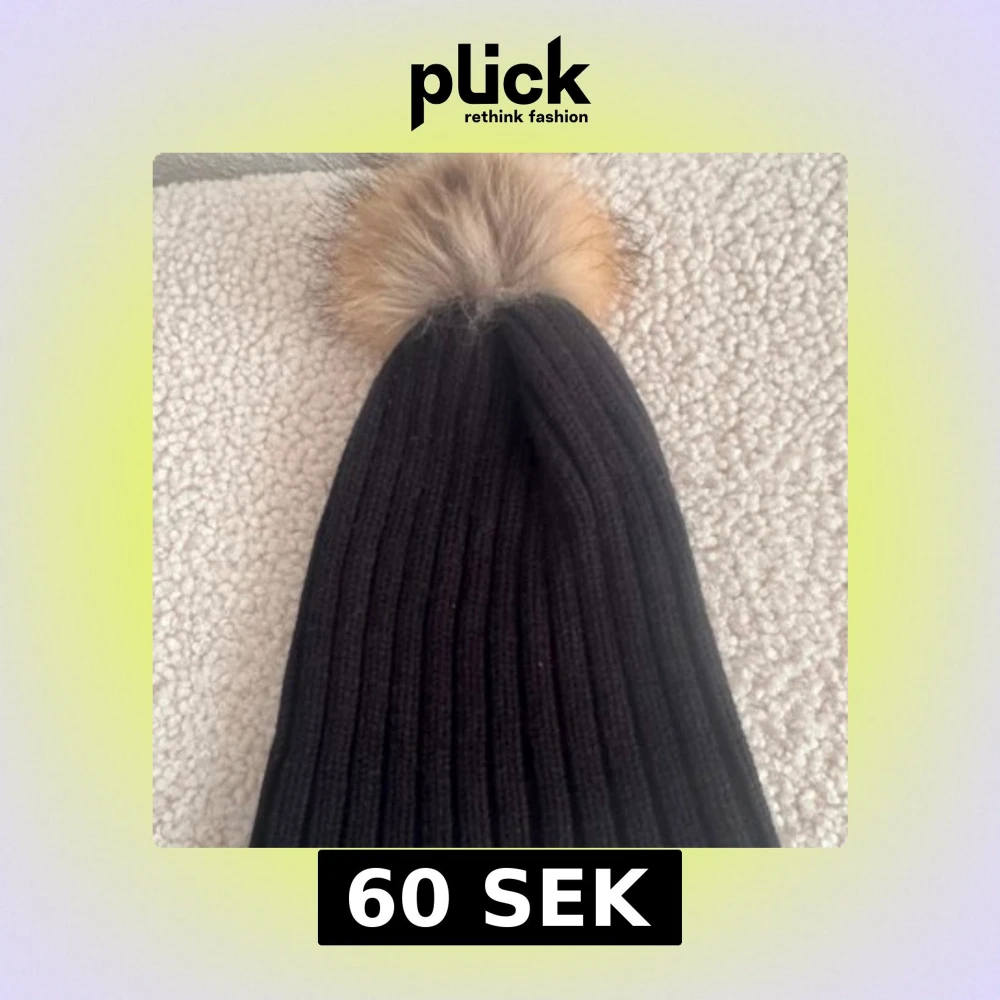 Svart ribbad mössa med pälsboll - 0 Svart ribbad mössa med pälsboll - 1 Svart ribbad mössa med pälsboll - 2