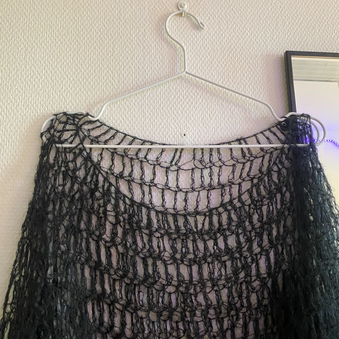 Det är en virkad tröja med mjukt och lätt material. Är jätte fin att ha till vardag, fest eller som ett tillägg för att styla bas plag. Oanvänd då den inte kom till användning. Om ni vill ha fler bilder eller har några frågor är det bara att skriva ❤️