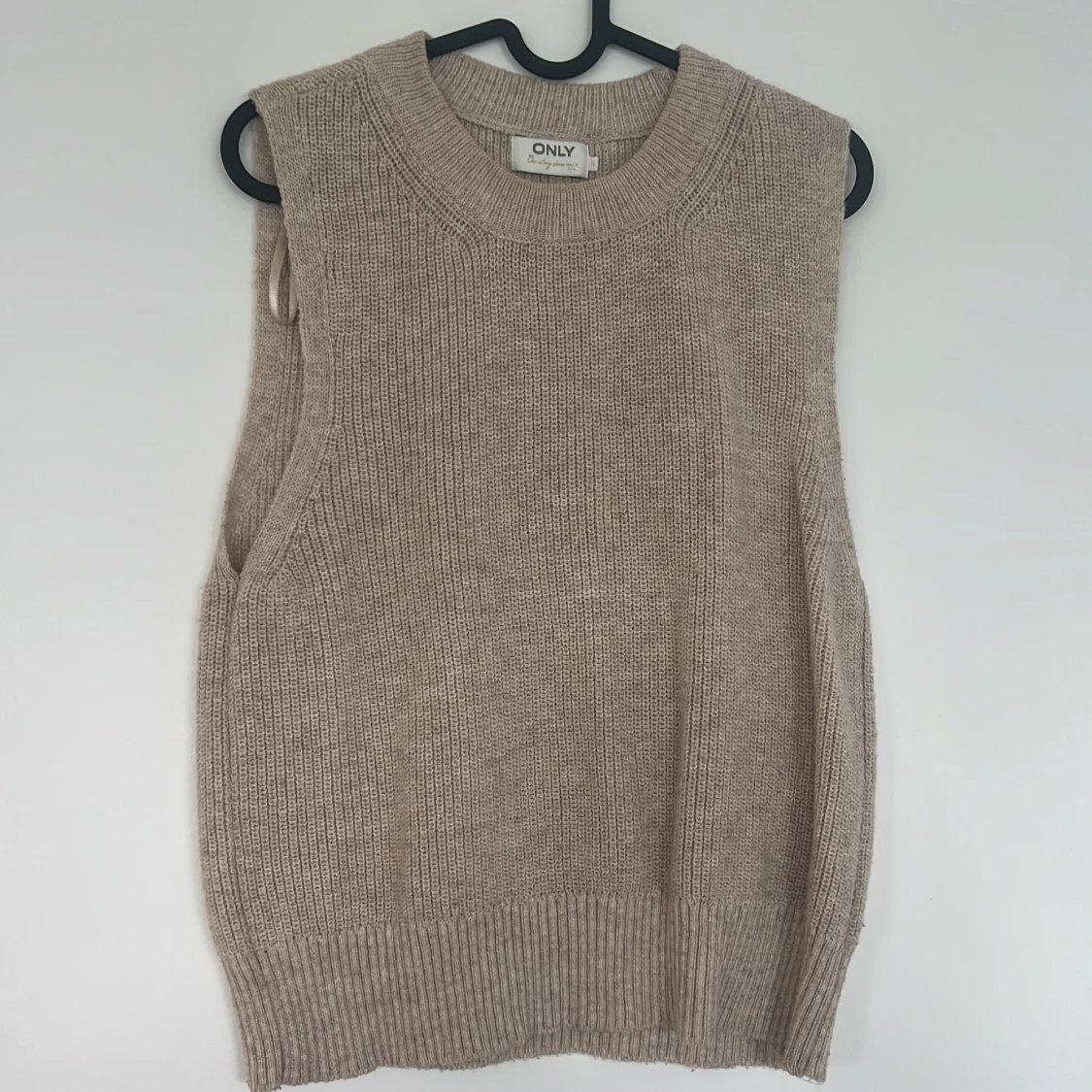 Jättefin beige stickad väst från ONLY, använd men i fint skick! Storlek M men lite oversize😍 100kr+frakt