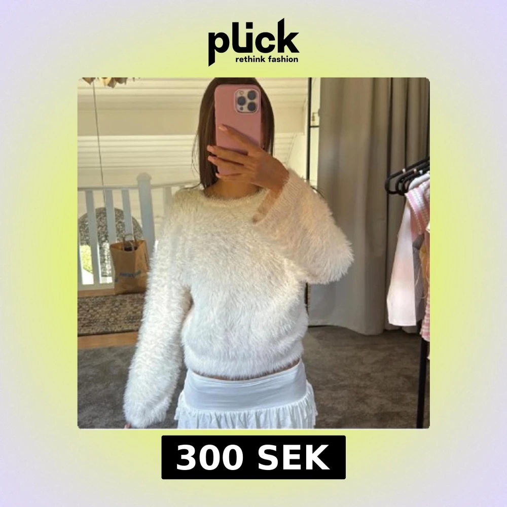 Säljer min fina helt oanvända lurviga stickade tröja då den inte passar mig. Den har en öppen rygg.