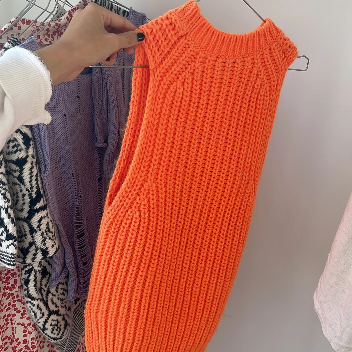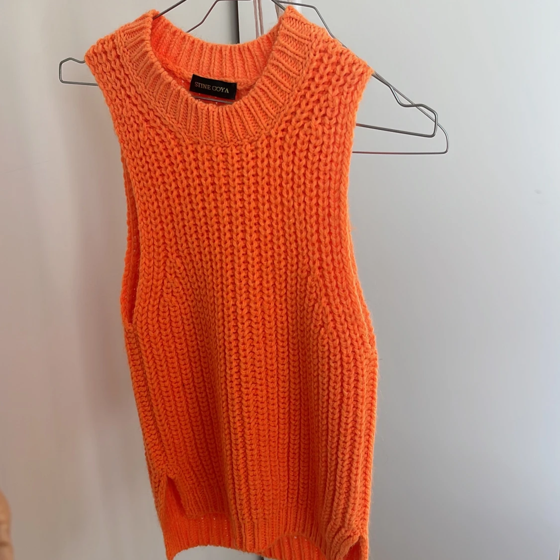 Jättefin orange väst från Stine Goya Köptes i Köpenhamn för 1 år sedan, aldrig användt då jag helt enkelt har för mycket kläder. Köptes för 950 kr säljes för 300kr Stel s