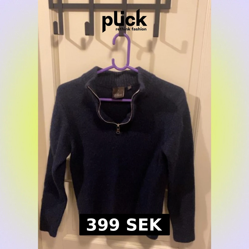 Snygg marinblå stickad tröja från Oscar Jacobson, tillverkad i Italien. Tröjan har en half zip-dragkedja vid halsen och är långärmad med ribbade muddar. Perfekt för dig som gillar klassisk stil med en modern touch.