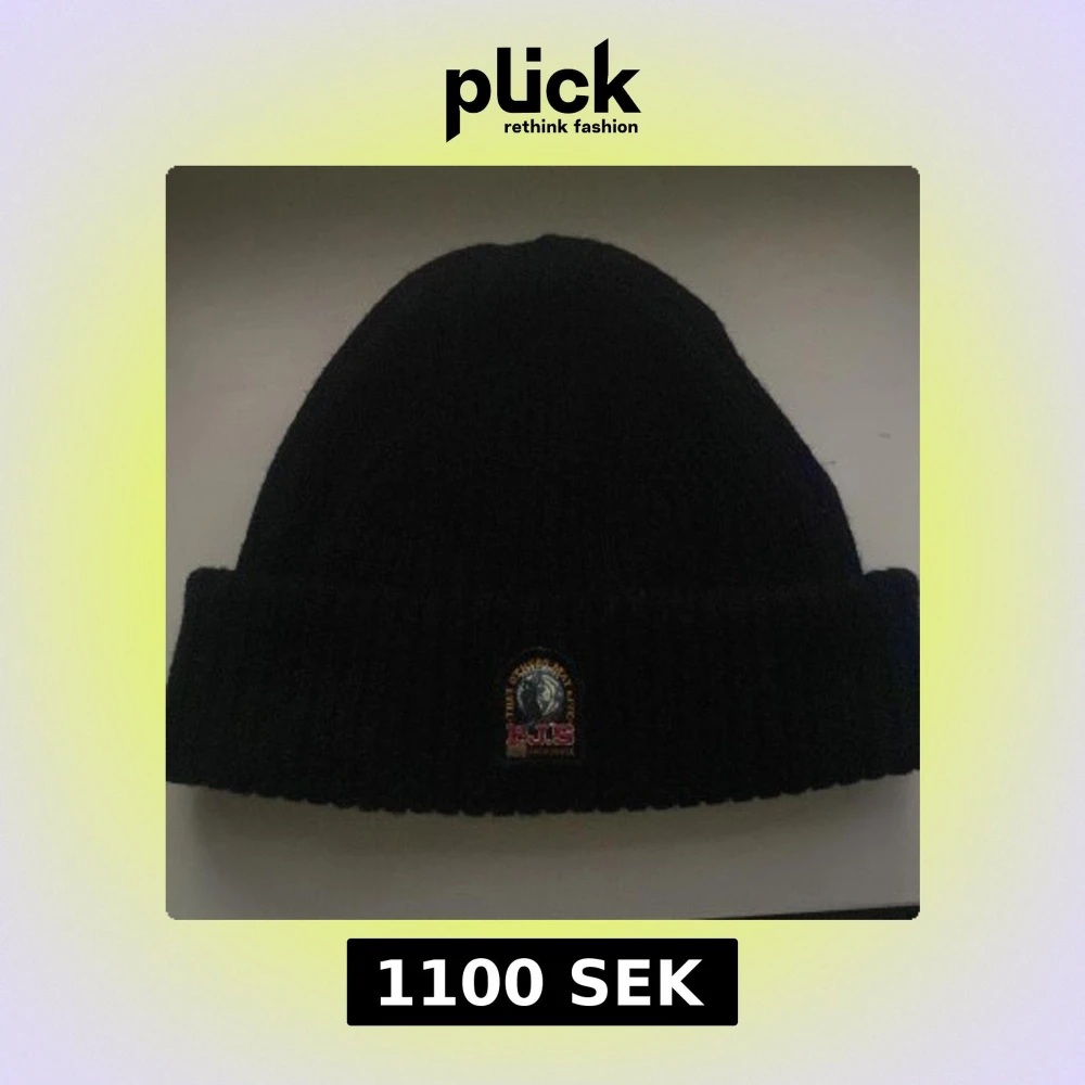 Svart ribbstickad mössa från Parajumpers med uppvikt kant och klassisk PJS-logga framtill. Tillverkad i mjukt material som håller dig varm under kyliga dagar. Perfekt accessoar för höst och vinter. Har haft den i 1 månad men den passar inte mig