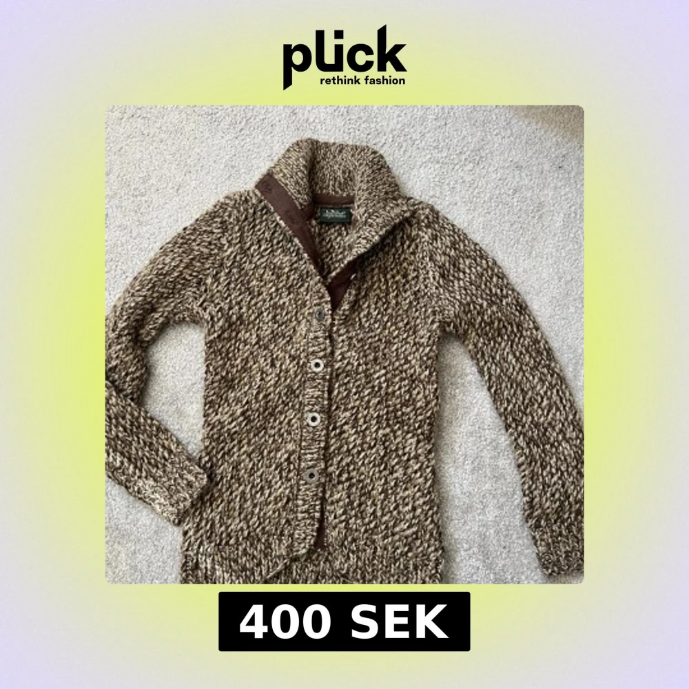 Säljer en chunky stickad kofta från Peak Performance i beige och bruna toner. Koftan har grovstickat mönster, bred krage med bruna detaljer och metallknappar framtill. Perfekt för kyliga dagar och riktigt snygg till jeans eller chinos.