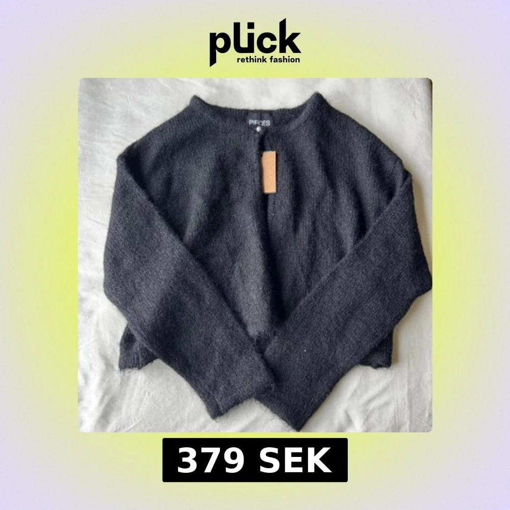 Mjuk stickad kofta från Pieces med en pärlknapp framtill. Aldrig använd. Lappen kvar + extra knapp. Fraktar inom 24h!