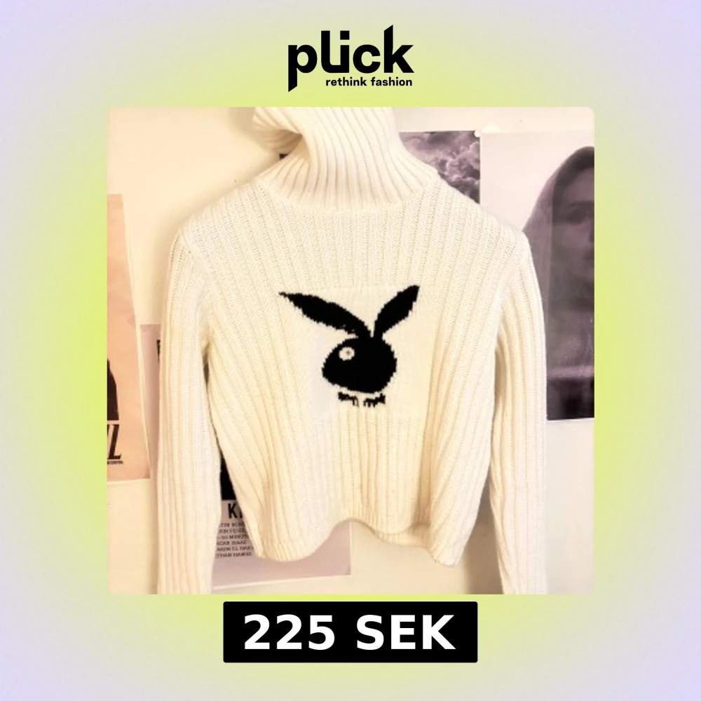 Vit ribbstickad polotröja från Playboy med svart ikonisk kaninlogo framtill. Tröjan har hög polokrage, lång ärm och är gjord i mjukt stickat material. Perfekt för dig som vill ha en statement piece med cool vibe.