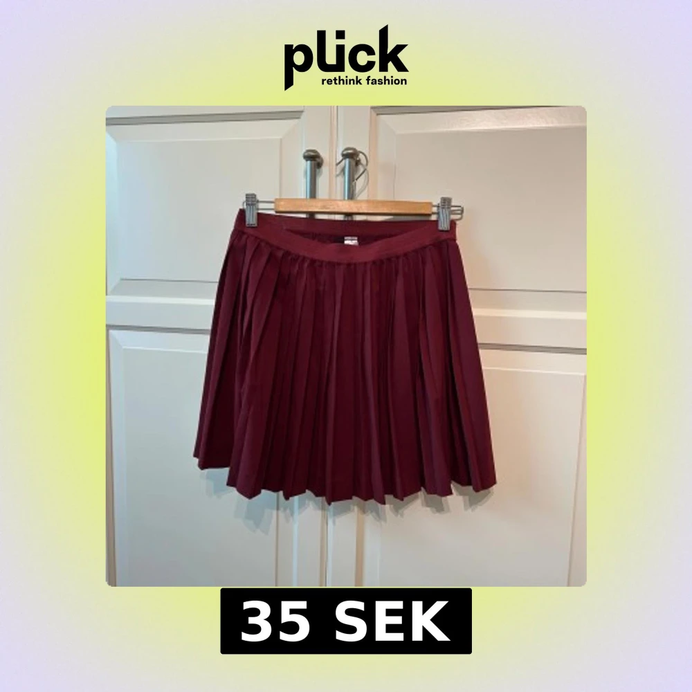 Säljer en vinröd plisserad kjol från H&M Divided. Kjolen har en kort längd och bred resår i midjan för en bekväm passform. Perfekt att styla med en enkel topp eller stickad tröja.