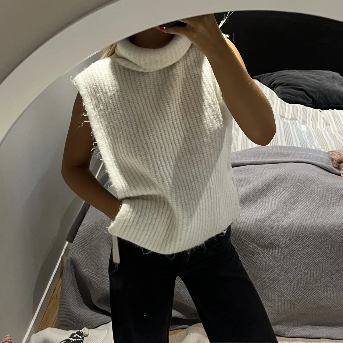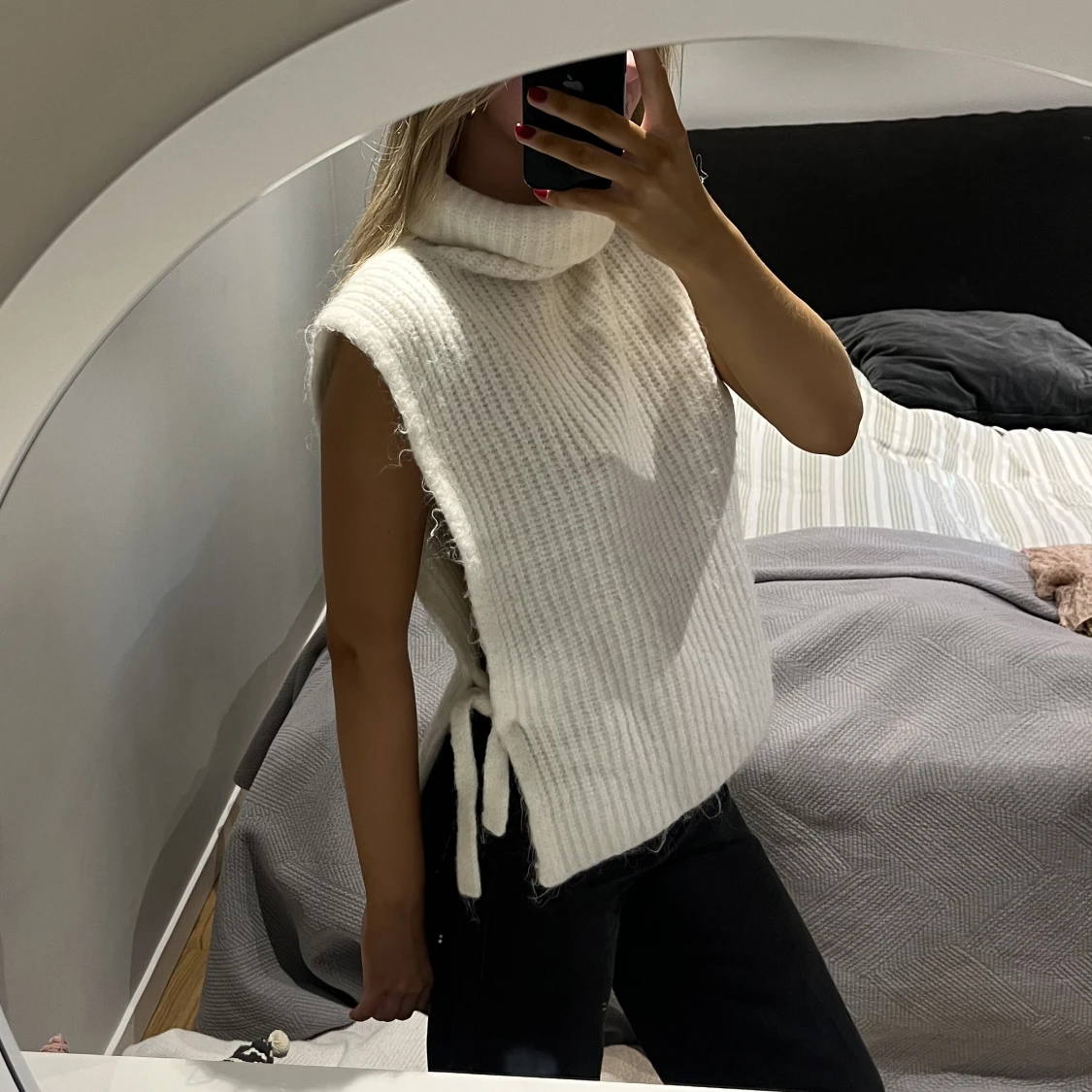 Superfin stickad väst med knyten på sidorna, snygg bara som den är eller med en tröja eller skjorta under! Fint skick knappt använd, inga noppor!🌟