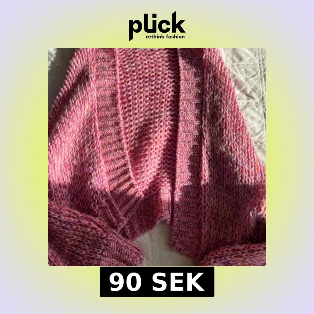 Supermysig rosa stickad kofta från Pull&Bear i chunky garn med inslag av lila och orange. Koftan har bred ribbad kant, öppen framtill och långa ärmar. Perfekt för lager-på-lager och ger en färgklick till din outfit.