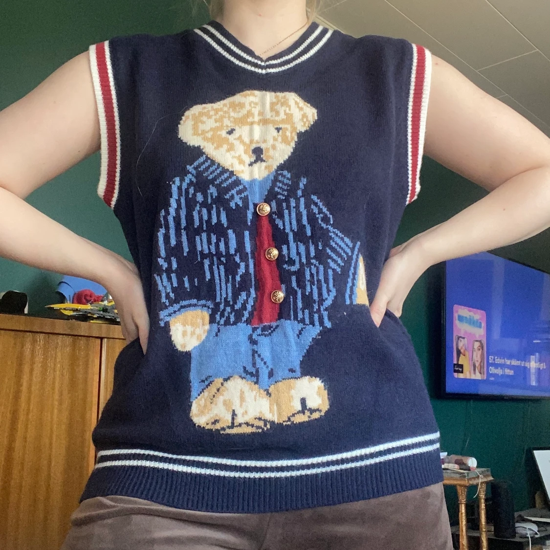 Stickad väst från Cider med en stor Björn framtill🐻 aldrig använd och lappen är kvar. Frakt tillkommer och jag erbjuder alltid spårbar frakt.