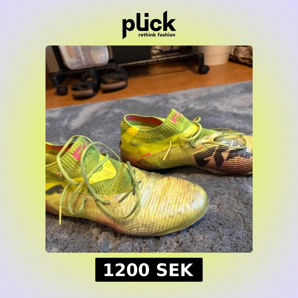 Säljer ett par Puma Future elite fotbollsskor i en riktigt fet gul färg med svarta och rosa detaljer. Skorna har snörning, stickad ovandel och coolt mönster på sidorna. Sulan har orange dobbar och Puma-logga. Perfekt för dig som vill sticka ut på planen.⭐️Pris kan diskuteras
