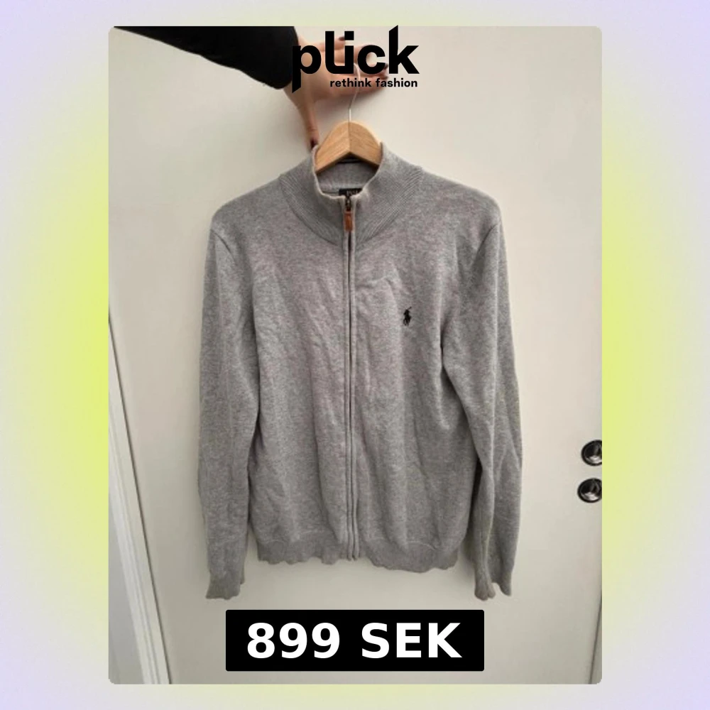 Snygg grå kofta från Polo Ralph Lauren i bomull med dragkedja och ribbad krage. Klassisk logga broderad på bröstet och diskreta muddar vid ärmslut och nederkant. Perfekt som julklapp. Köpt för 1200kr pris kan diskuteras.