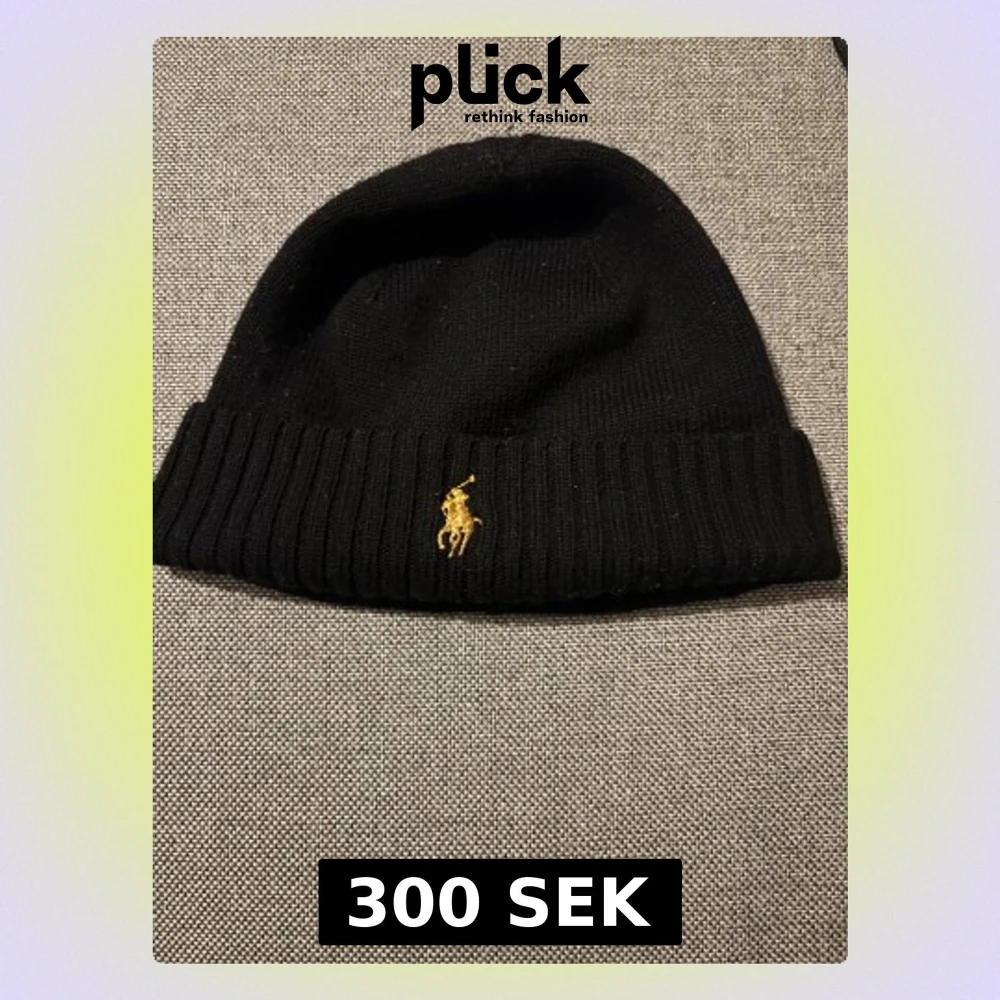 Svart ribbstickad mössa från Polo Ralph Lauren med klassisk gul broderad logga framtill. Enkel och stilren design som passar perfekt till kalla dagar. Tillverkad i mjukt material för skön komfort och snygg passform. Man hittar inte den här sorten längre. Liknande produkter Kostar 695 kr på webbsidan och jag säljer för 300