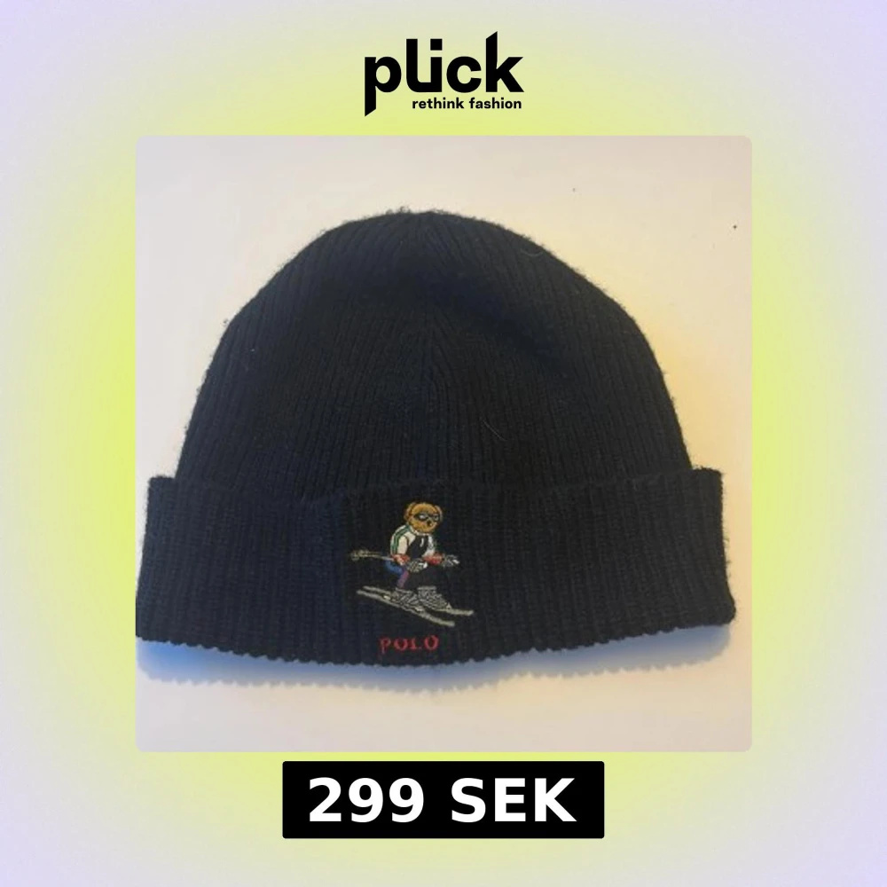 Svart ribbstickad mössa från Polo Ralph Lauren med broderad skidande björn framtill och Polo-text i rött. Klassisk uppvikt kant och mjukt material som håller dig varm. Perfekt accessoar för vintern och snygg detalj till din outfit.