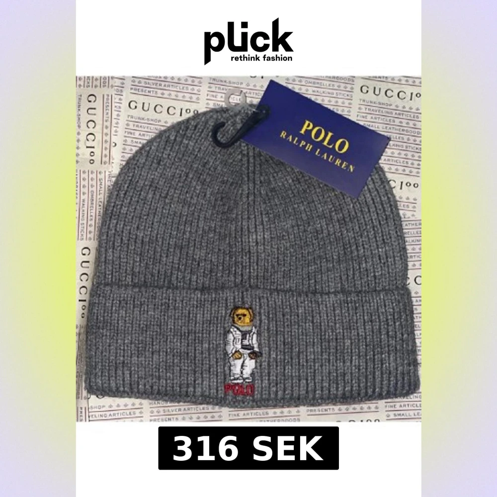 Snygg grå ribbstickad mössa från Polo Ralph Lauren med broderad nalle i astronautdräkt framtill. Perfekt accessoar för att hålla dig varm och ge din stil en cool touch. Klassisk uppvikt kant och mjukt material.