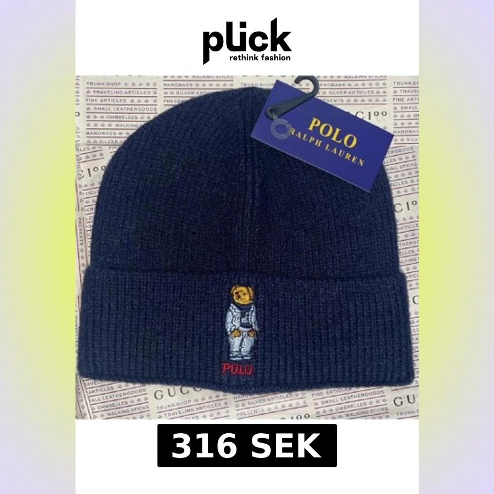 Snygg marinblå ribbstickad mössa från Polo Ralph Lauren med broderad nalle i astronautdräkt framtill och röd POLO-text. Perfekt för dig som vill ha en cool accessoar med unik detalj. Mjuk och varm, passar till alla dina vinterlooks.
