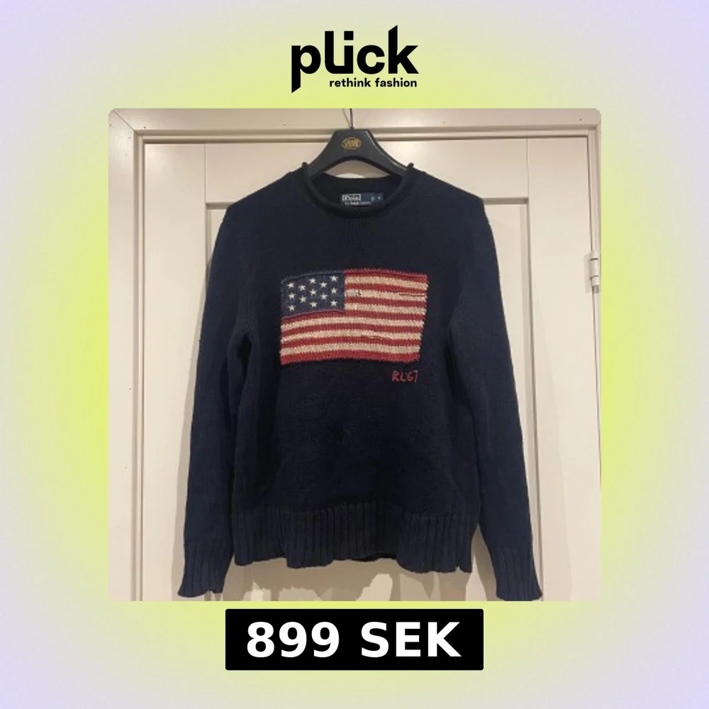 Mörkblå stickad tröja från Polo Ralph Lauren med amerikansk flagga broderad på bröstet och RL67-detalj. Tröjan har rund hals, ribbade muddar och är tillverkad i bomull, linne och silke. Perfekt för dig som vill ha en klassisk och tidlös look.