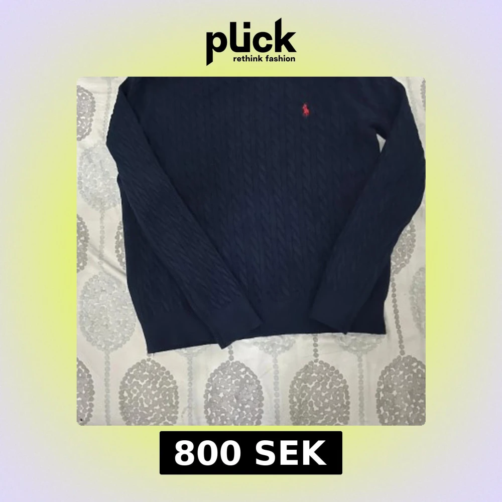 Snygg marinblå stickad tröja från Polo Ralph Lauren med klassiskt kabelstickat mönster och rund hals. Tröjan har långärmade ribbade muddar och en röd broderad logga på bröstet. Perfekt för dig som gillar stilren och tidlös design. Har haft ett par gånger, kan diskutera priset!
