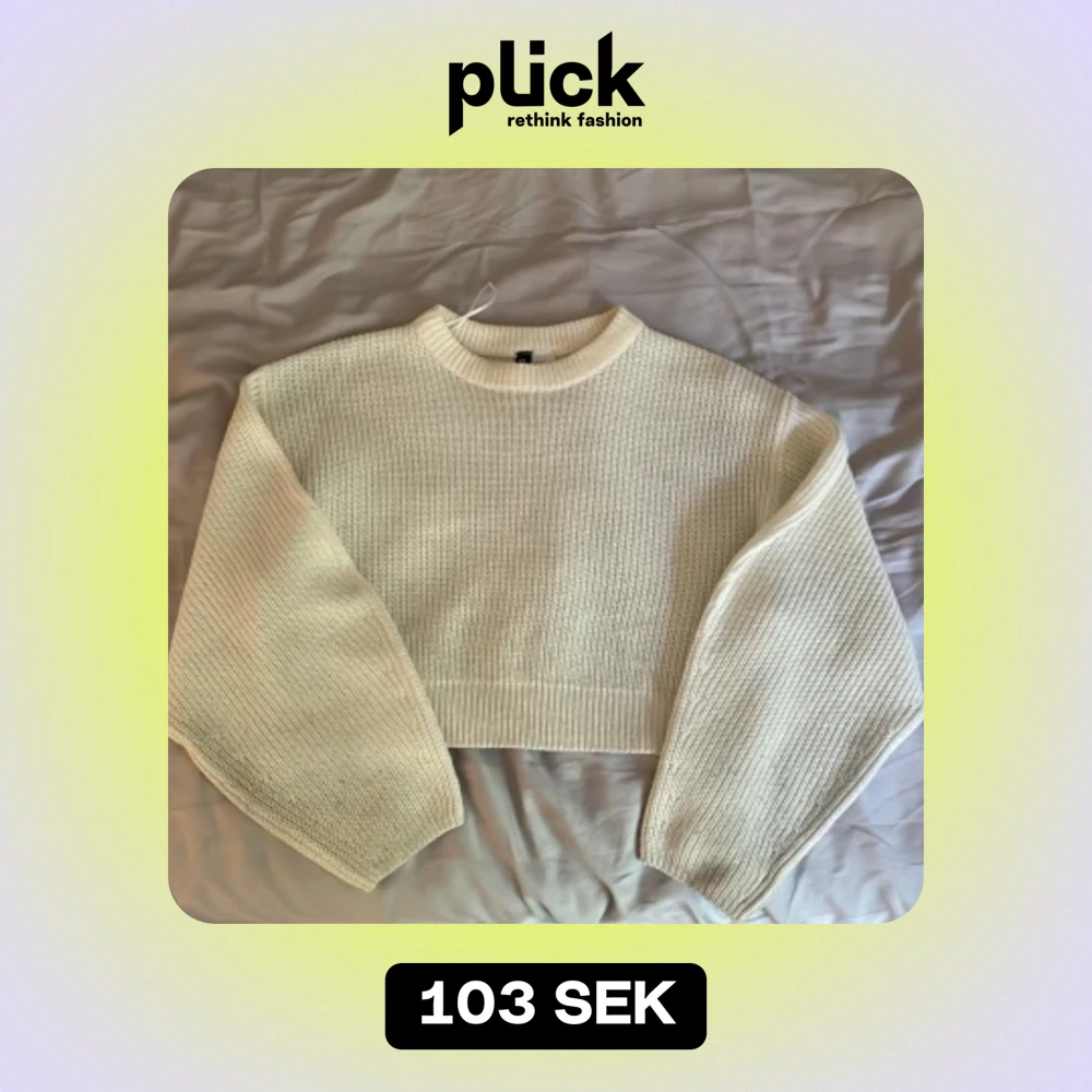 Säljer en jätte fin vit stickad tröja, jätte bra skick, den är stretchig, passar för de som har storlek 160