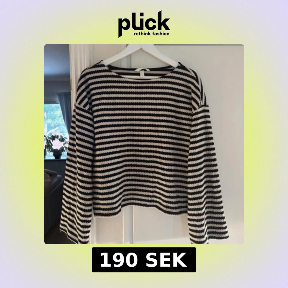 Säljer en svartvit randig stickad tröja från H&M. Tröjan har lång ärm, rund halsringning och är i mjuk stickad bomull. Snygg till både jeans och kjol.