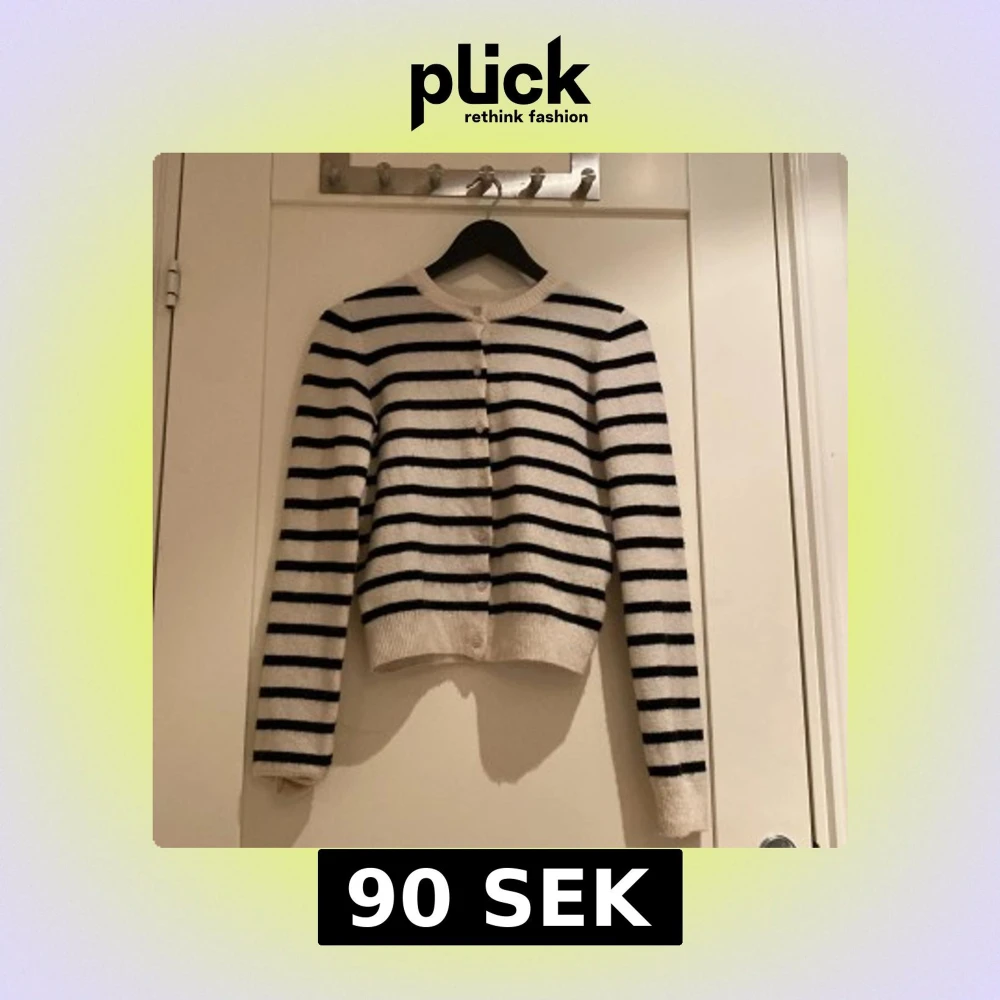 Snygg vit och svart randig kofta från H&M i storlek XS. Koftan har rund hals, långa ärmar och knappar framtill. Mjuk stickad känsla som är perfekt för lager-på-lager. Passar dig som gillar klassisk och chill stil.