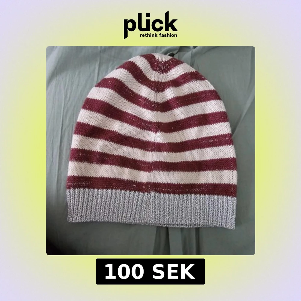Snygg randig mössa från Esprit i vinrött och vitt med en silver ribbad kant. Perfekt för kyliga dagar med sin stickade design. Mössan har en liten logotypdetalj i metall.