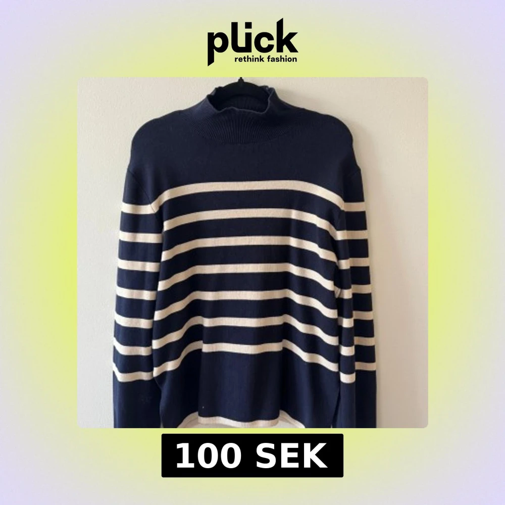 Snygg polotröja från H&M i marinblått med vita horisontella ränder. Tröjan har lång ärm och en ribbad polokrage som ger en cool och stilren vibe. Perfekt för dig som gillar klassiska mönster och vill ha en bekväm och trendig look.