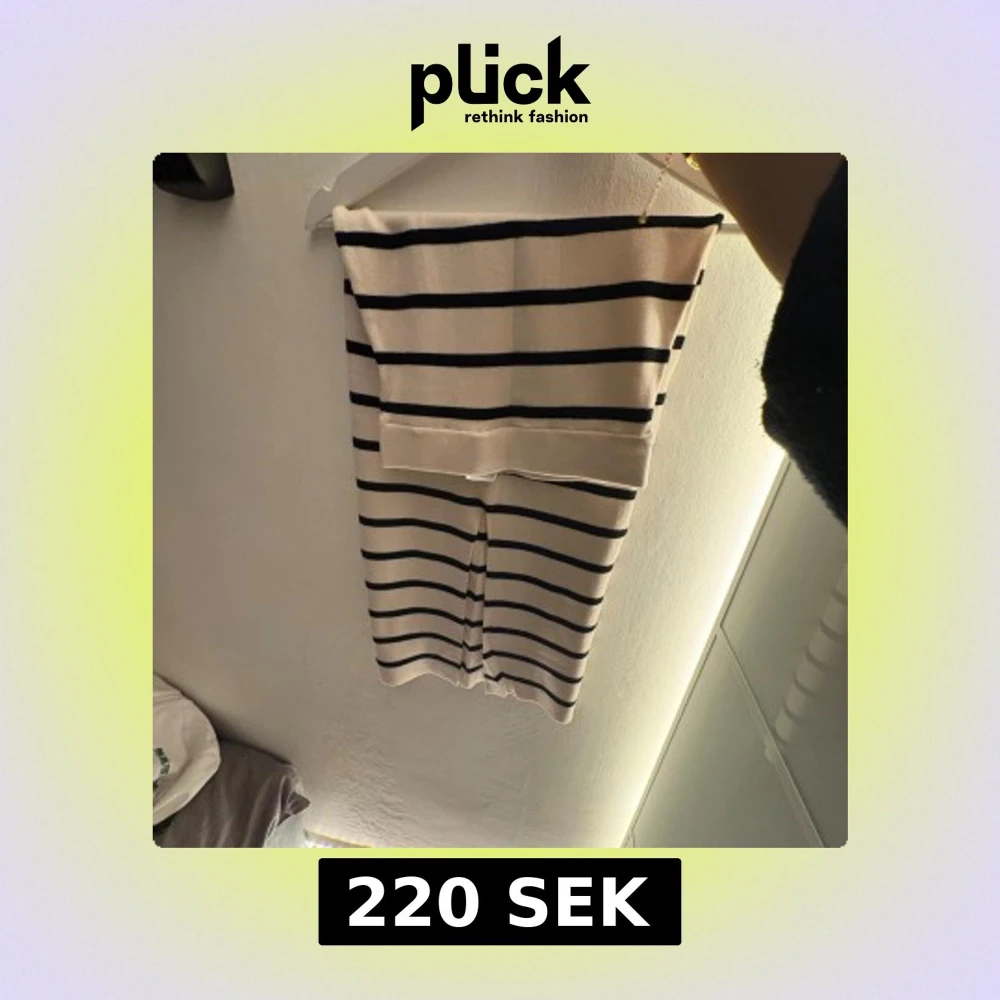 Superfin stickad kjol från H&M i storlek XS. Kjolen är beige med svarta horisontella ränder och har en rak, något längre modell. Perfekt för dig som gillar klassisk och stilren look med en twist av marint.