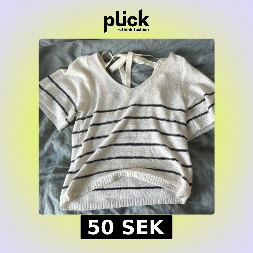 Superfin vit stickad topp från JDY med svarta ränder och kort ärm. Snygg v-ringning och knytband i ryggen som ger en extra detalj. Perfekt till jeans eller kjol för en chill look. Mjuk och skön, passar perfekt till vår och sommar.