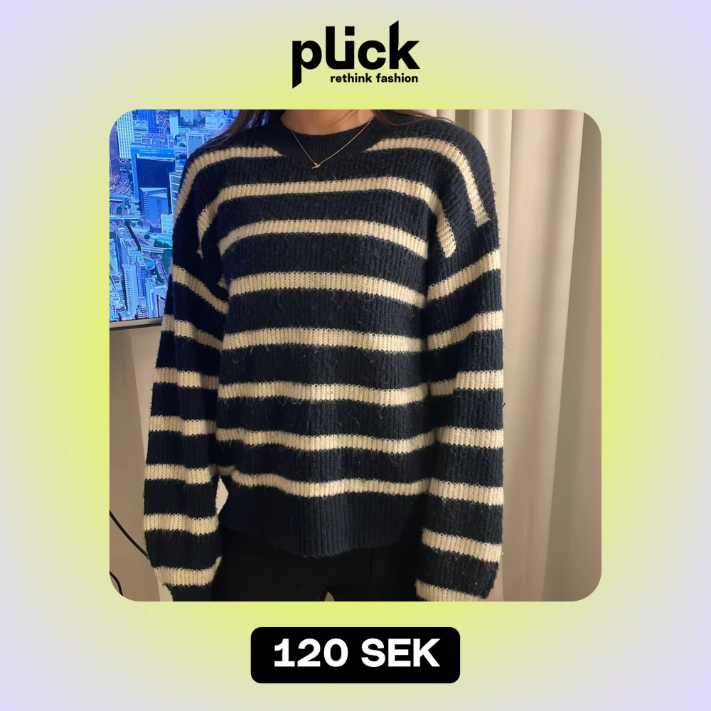 Säljer en supermysig randig stickad tröja i marinblått och vitt. Den har en avslappnad passform med långa ärmar och ribbade muddar. Perfekt för kyliga dagar och att mysa i hemma. Passar både till jeans och kjol! Lite använd och tvättad men fortfarande bra skick❤️