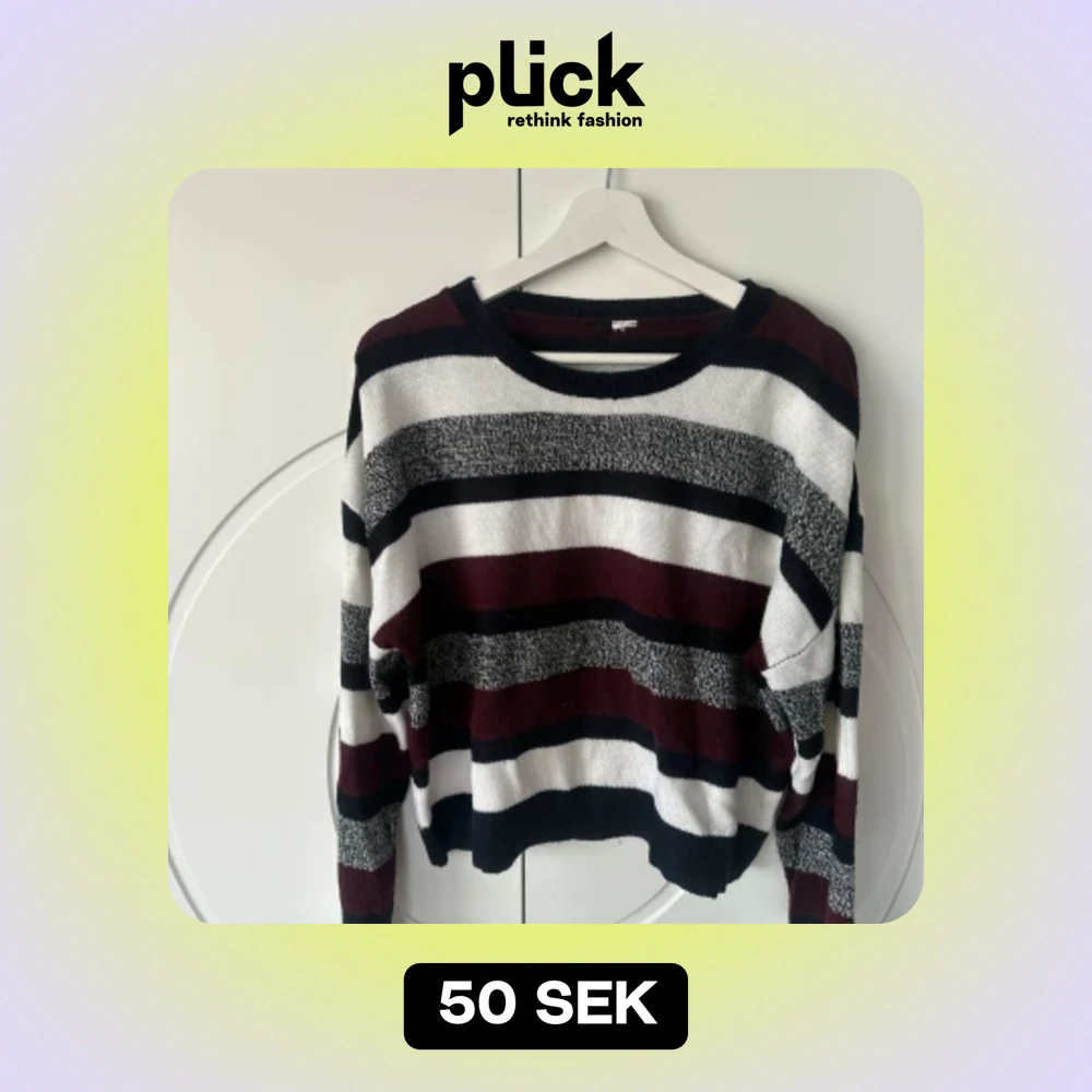 Säljer en supermysig stickad tröja med breda ränder i vinrött, svart, vitt och grått. Perfekt för höst och vinter! Tröjan har en avslappnad passform och långa ärmar, vilket gör den idealisk för kyliga dagar. Den är i bra skick och redo för en ny ägare. 🖤🤍