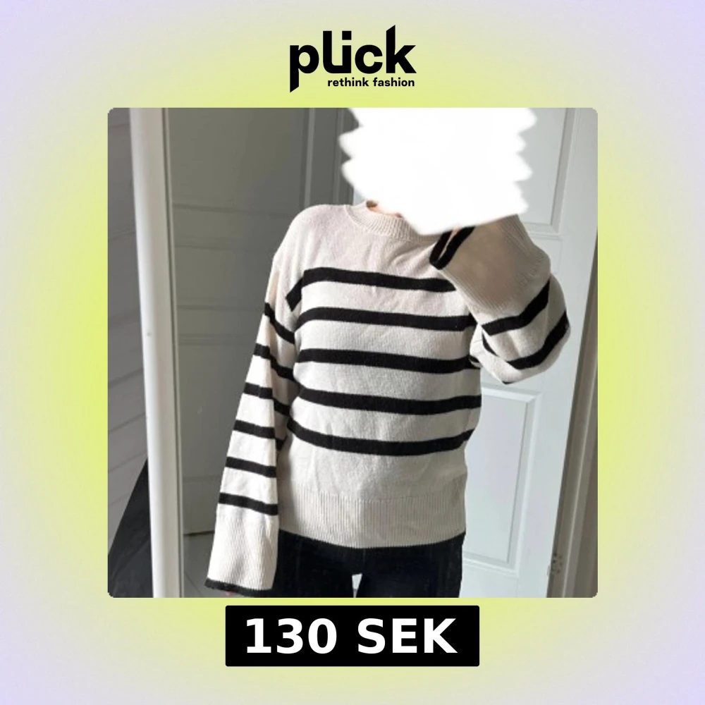 Säljer en vit/beige stickad tröja med svarta ränder. Tröjan har rund halsringning och långa ärmar med ribbade muddar. Perfekt för en avslappnad och stilren look. Tröjan är ifrån H&M och har använt 1 gång.