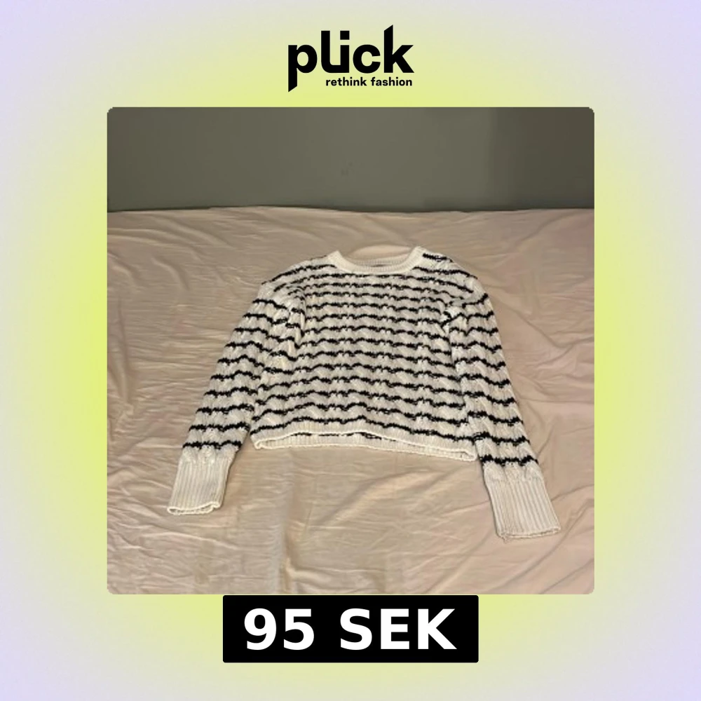 Säljer en snygg stickad tröja från Forever 21 i svart och vitt. Tröjan har ett randigt mönster och långa ärmar. Perfekt för en stilren look! Jättemysig tröja nu på vintern,passar med nästan allt och andvänd 1 gång