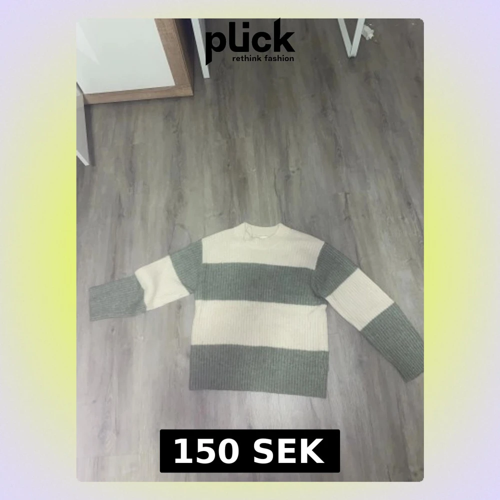 Supermysig stickad tröja från H&M i storlek XS. Tröjan har breda ränder i beige och grått, ribbstickad struktur och rund hals. Perfekt för lager-på-lager och chill dagar. Snygg och enkel att matcha med jeans eller kjol.