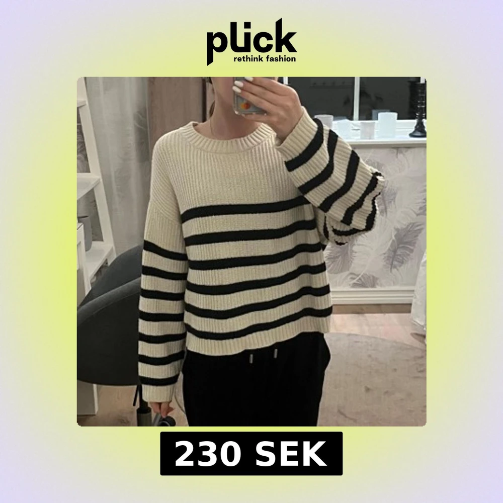 Säljer en snygg stickad tröja från Lindex i krämvitt med svarta ränder. Tröjan har en avslappnad passform och långa ärmar. Perfekt för en stilren men ändå väldigt skön look. 🖤🤍Använd 4 gånger. Den är som nyskick. Kostade 300 kr när jag köpte den. Super skön och jätte fin 😍